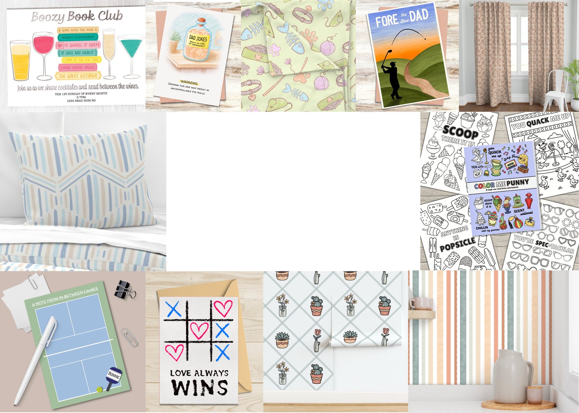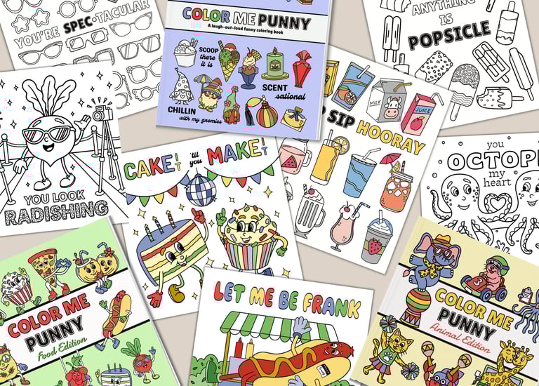 Clever captions & witty puns paired with playful illustrations